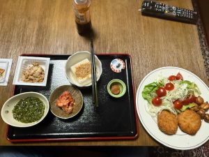 3/24の夕食です。 サウナと水風呂は数えきれないくらい入りました。