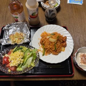 一応簡単に。 朝食は、お茶漬けとヨーグルト 昼食は、フライ(魚)とおにぎり、ウインナー2本 夕食は、ししゃも3尾、サラダ、ニンニクのホイル焼き です。
