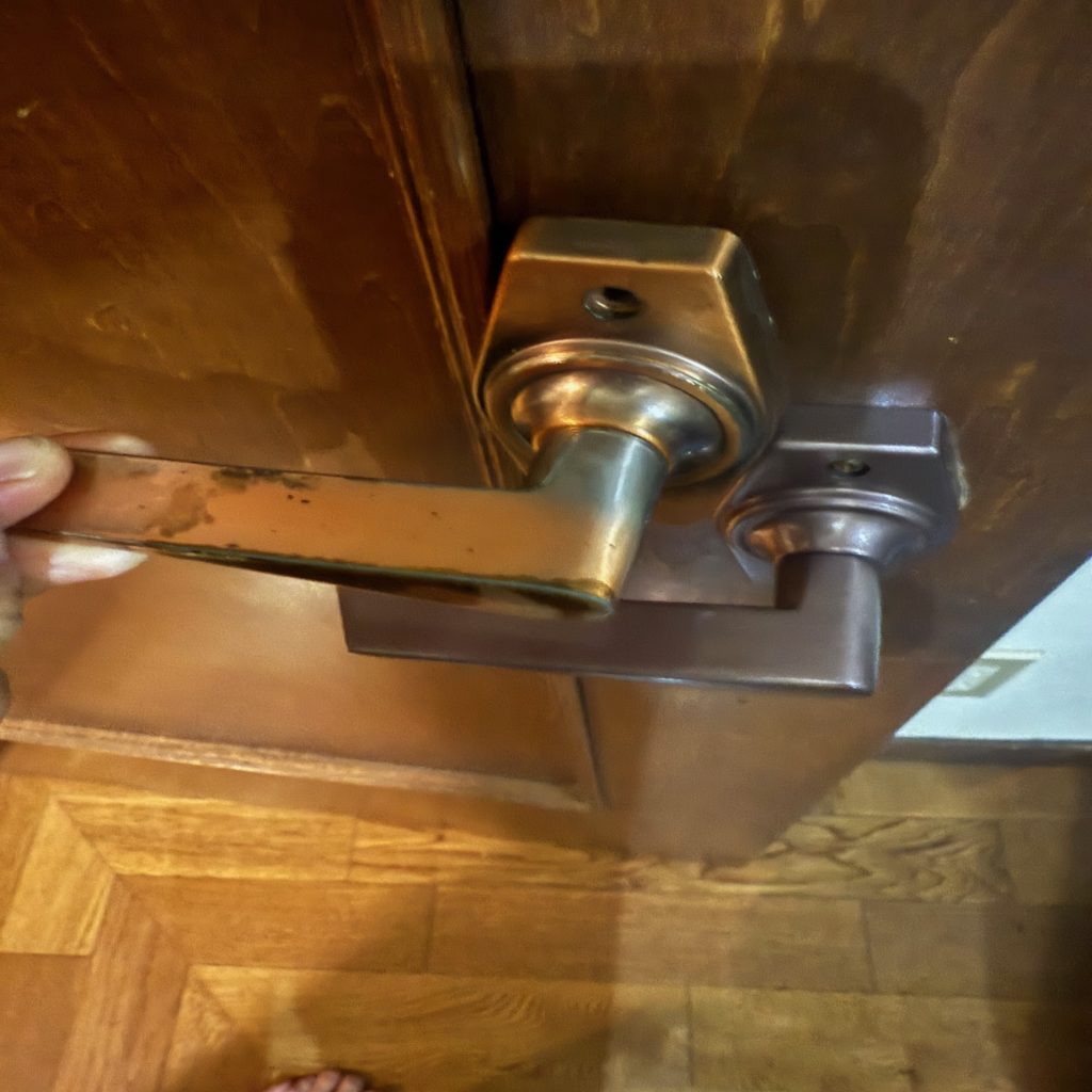 同じ形のドアレバーにしないと跡やビスの穴が目立ってダサくなるのです。最初はこんな色してたのかと感動。